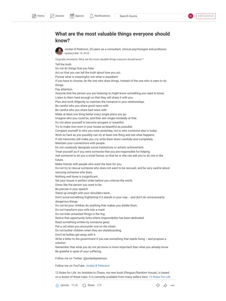 Jordan B Peterson S Answer To What Are The Most Valuable Things Everyone Should Know Quora Pdf